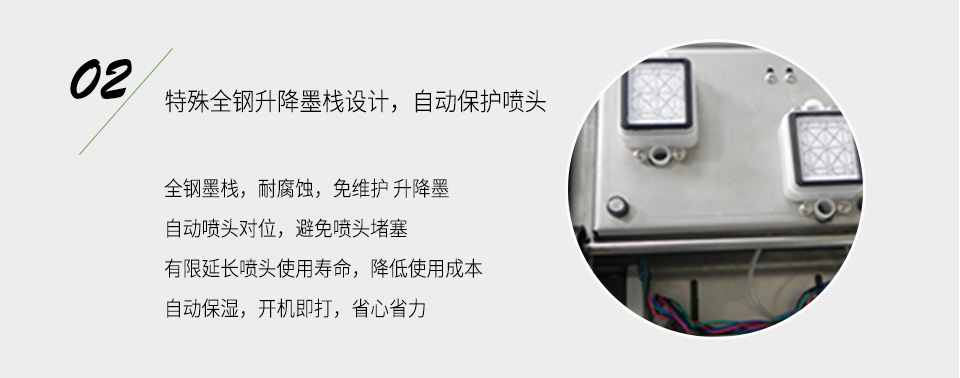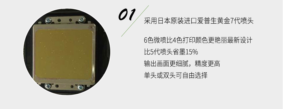 機(jī)器采用Epson新研發(fā)的高速7代鍍金打印頭,噴頭包含180/列*6列